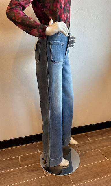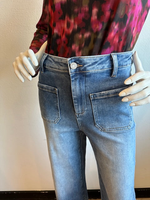 Bayeas- Patch Pocket High Rise Jean- Medium Blue
