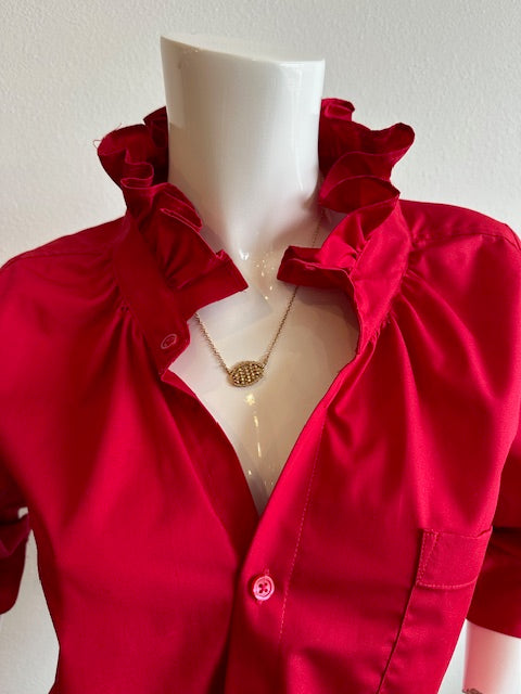 Hey, Southern Lover! This Southern-inspired delight has 3/4 puff sleeves that gracefully sit right above the elbow. Accentuated by an inverted pleat at the cuff and adorned with KMJ's signature ruffle collar, this gal gives you the confidence you need to conquer the day.