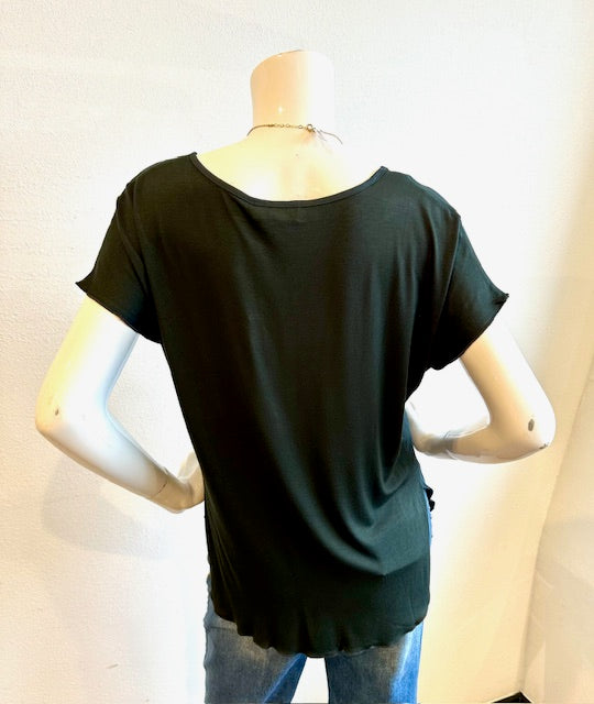 Lola & Sophie- Hybrid Vneck Drop Shoulder Top- Forest