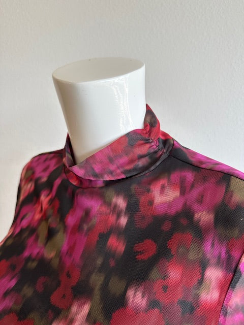 Sanctuary- L/S Mesh Mock Neck Top- Berry Glow