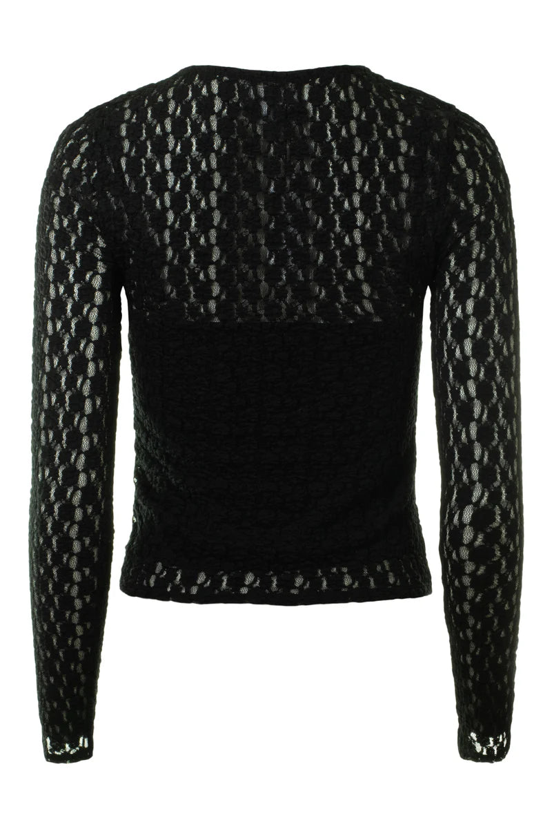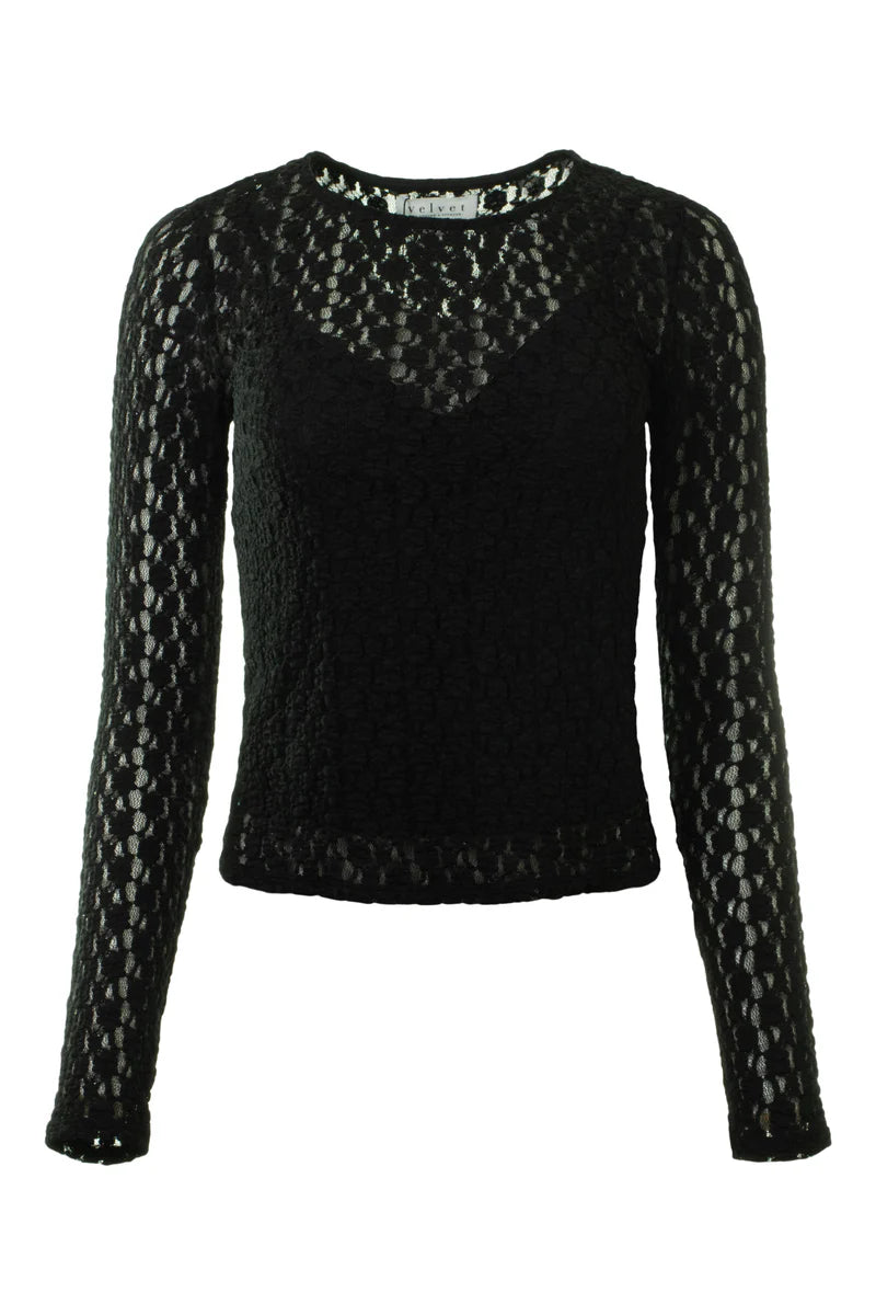 The Tori Crew Neck top is designed with a flattering fitted silhouette. This lightweight, semi-sheer piece layers beautifully over camisoles or under blazers for a versatile, day-to-night statement. Soft, stretchy lace fabric for a comfortable fit. Crew neckline and long sleeves. The semi-sheer design adds subtle allure