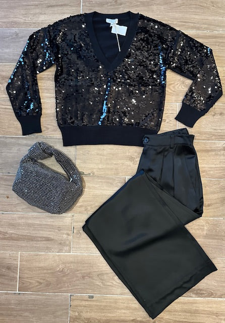 This is your perfect pop of sparkle! Truly a multi-purpose sweater: amazing with denim for a night out on the town and effortlessly elegant with a silk pencil skirt or your favorite dressy trouser.