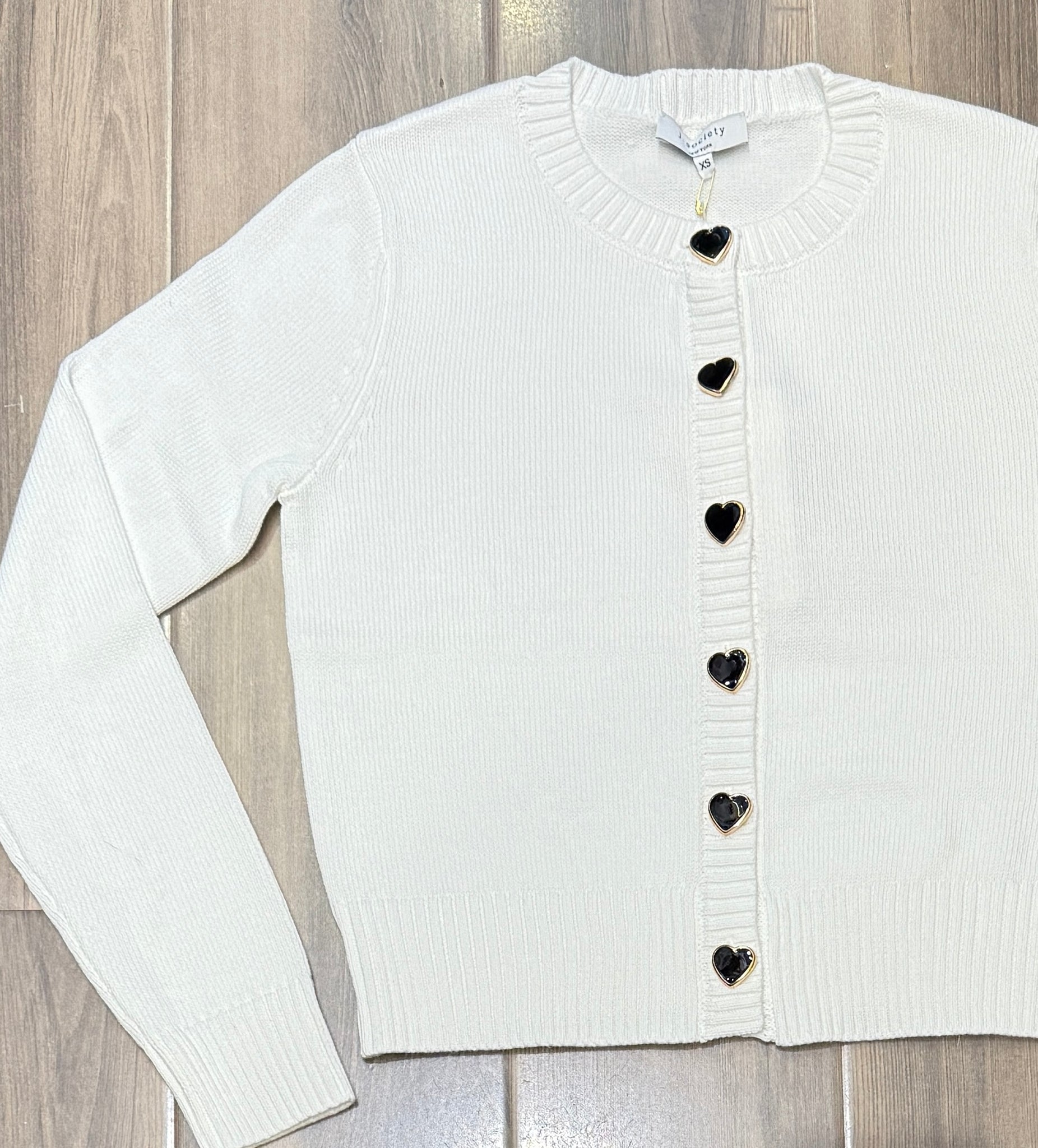 Fall in love with this heart button down cardigan in crisp white. Sweet heart details add a touch of romance to this timeless layer, making it perfect for Valentine's Day and beyond. Throw it over a dress, pair it with jeans, or wear it solo-this versatile cardigan brings warmth, charm, and a playful spirit to every outfit. Love looks good on you!