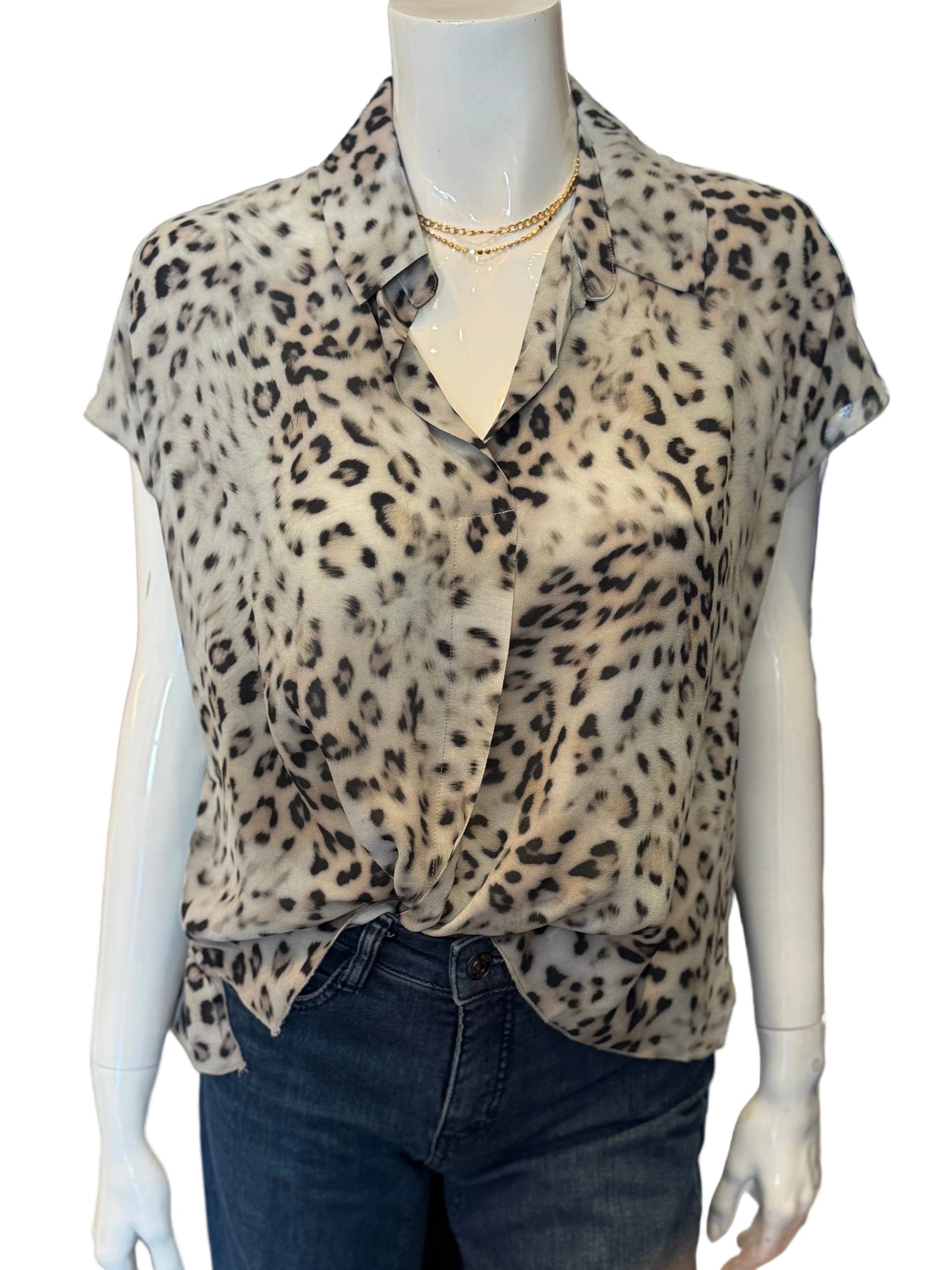 Unleash your wild side with this chic grey leopard print blouse from Lola & Sophie. Featuring a relaxed boxy silhouette, crisp collar, and charming cap sleeves, it's the perfect piece for effortless style that roars with personality. Dress it up or down-this versatile top pairs beautifully with everything in your closet. A playful statement piece that proves leopard print never goes out of fashion.