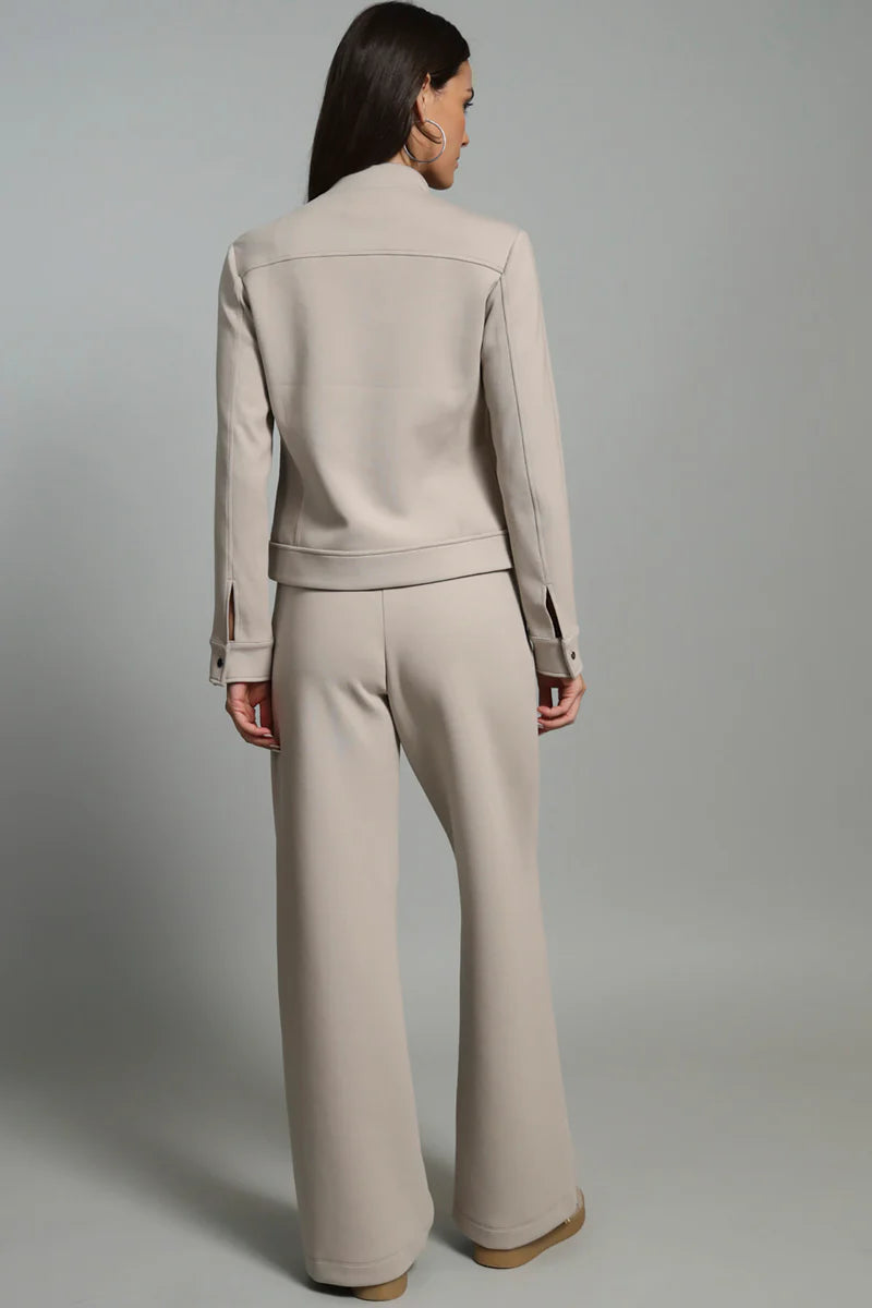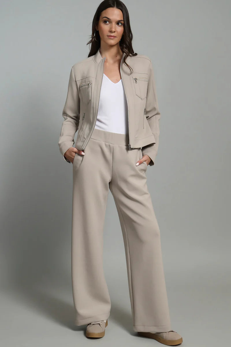 This light weight scuba pant is easy and versatile, you'll definitely reach out for it over and over again. Plenty of stretch and elastic waist allow for an easy fit. Pair with matching jacket for a complete look. Perfect for travel or a casual night out.