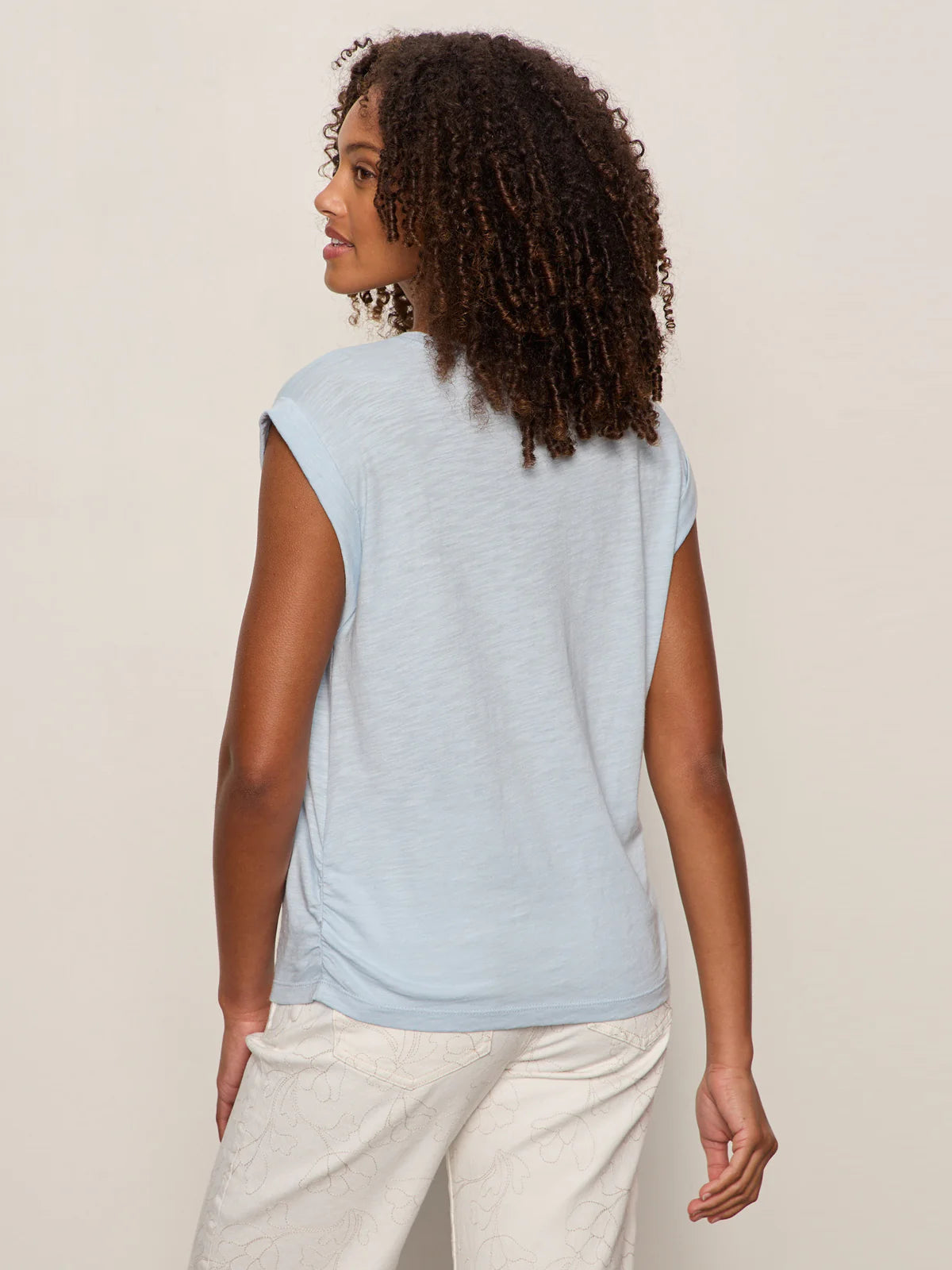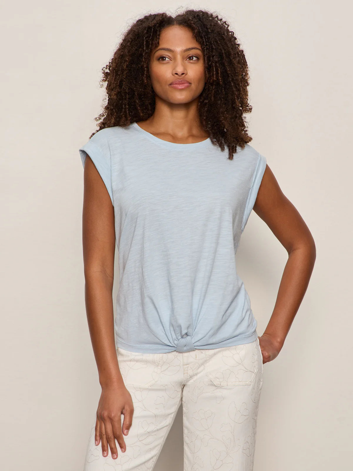 Knot your cares away in this playful cap sleeve muscle tee with a waist-cinching detail that's equal parts cute and clever. The strategically placed knot creates flattering definition. Draped in a captivating Blue Aura tone, this tee proves that sometimes the best style moments come from the smallest details-wear it solo for maximum impact or layer it under your favorite jacket.