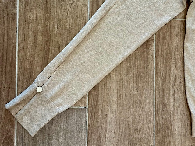 95% Cotton. 5% Cashmere. Machine wash cold. Lay flat to dry.