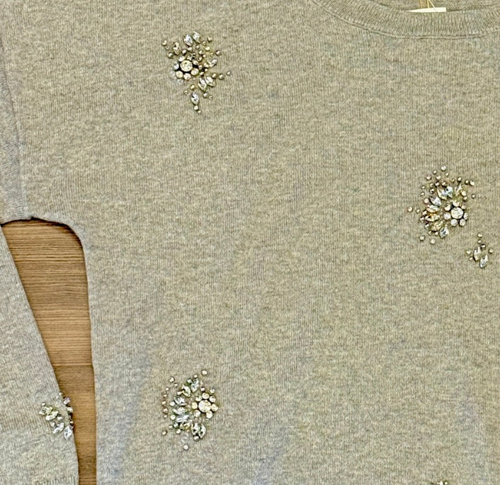 Make a sparkling statement this season with our rhinestone-detail sweater. 100% cotton sweater it features rhinestone embellishments that catch the light with every move, adding a touch of glamour to your winter wardrobe. The relaxed yet flattering fit makes it ideal for both festive gatherings and romantic date nights, while ribbed cuffs and hem keep the look polished. Pair it with sleek trousers or a satin skirt for an effortlessly elegant ensemble that shines all night long.