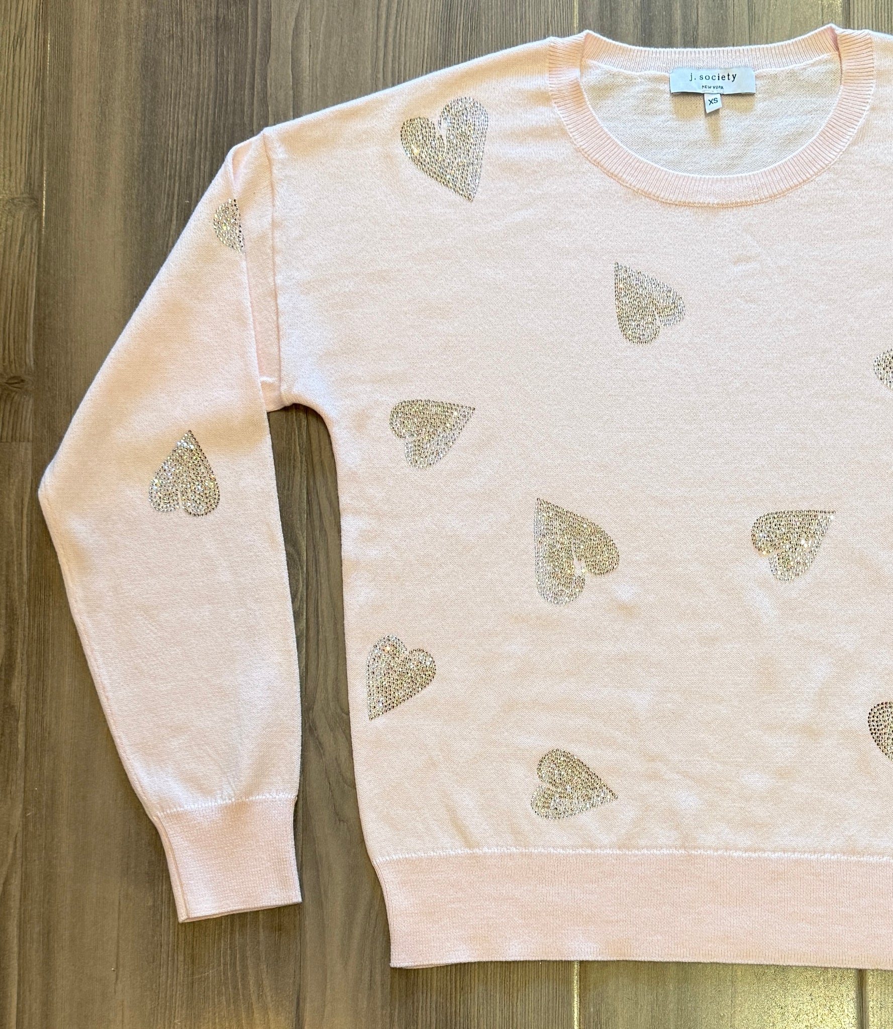 Spread the love in our J Society Glitter Heart Sweater. Soft cotton crewneck features shimmering glitter hearts that catch the light with every move-perfect for expressing your romantic side with a touch of sparkle. Cozy, comfortable, and undeniably charming, this ballet-hued sweater pairs effortlessly with your favorite jeans or skirts. Whether you're celebrating love or just embracing the season's sweetest vibes, this playful piece brings joy and glam to your everyday wardrobe.